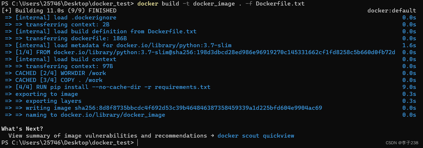 编写好Dockerfile后开始制作镜像。首先运行DockerDesktop程序(请事先安装),之后在终端打开项目文件。