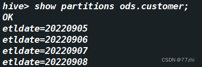 hive>show partitions ods.customer;