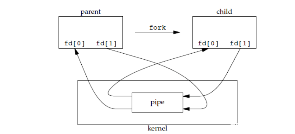 1. 管道管道是通过调用 pipe 函数创建的,fd[0] 用于读,fd[1] 用于写。#include <unistd.h>int pipe(int fd[2]);它具有以下限制:只支持半双工通信(单向交替传输);只能在父子进程或者兄弟进程中使用。2. FIFO也称为命名管道,去除了管道只能在父子进程中使用的限制。#include <sys/stat.h>int mkfifo(const char *path, mode_t mode);int mkf