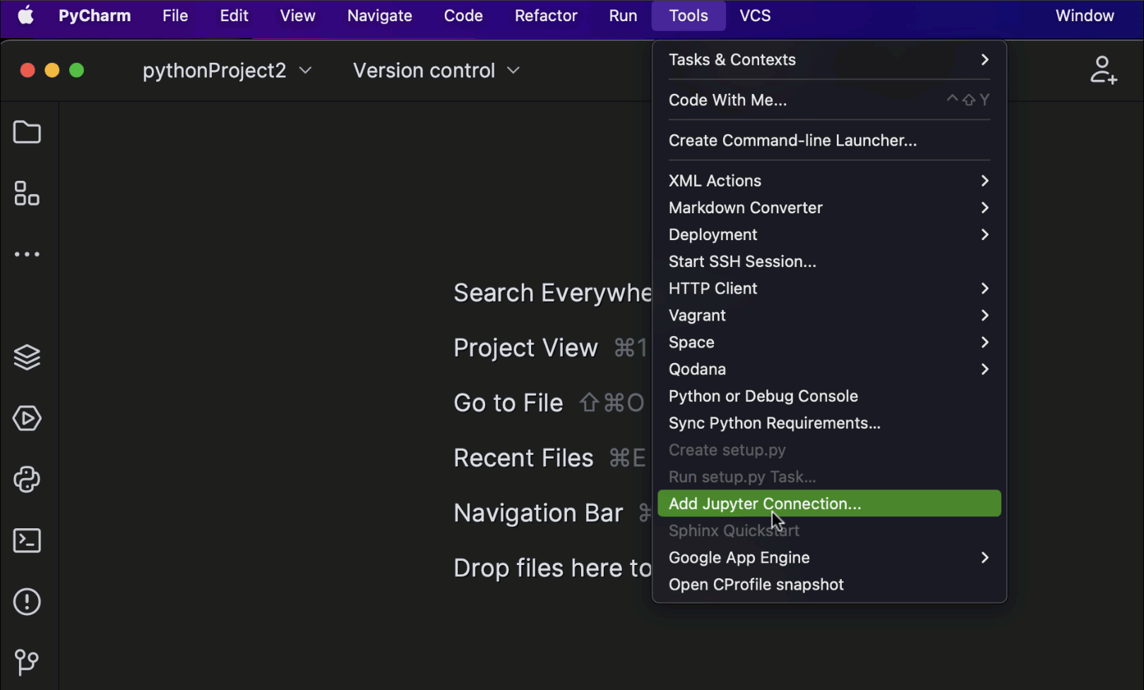 要在 PyCharm 中为项目附加一个远程 Jupyter 服务器,请从主菜单中选择Tools | Add Jupyter Connection(工具 | 添加 Jupyter 连接),并在弹出窗口中选择 Connect to Jupyter server using URL(使用 URL 连接到 Jupyter 服务器),远程服务器将被绑定到此特定项目。