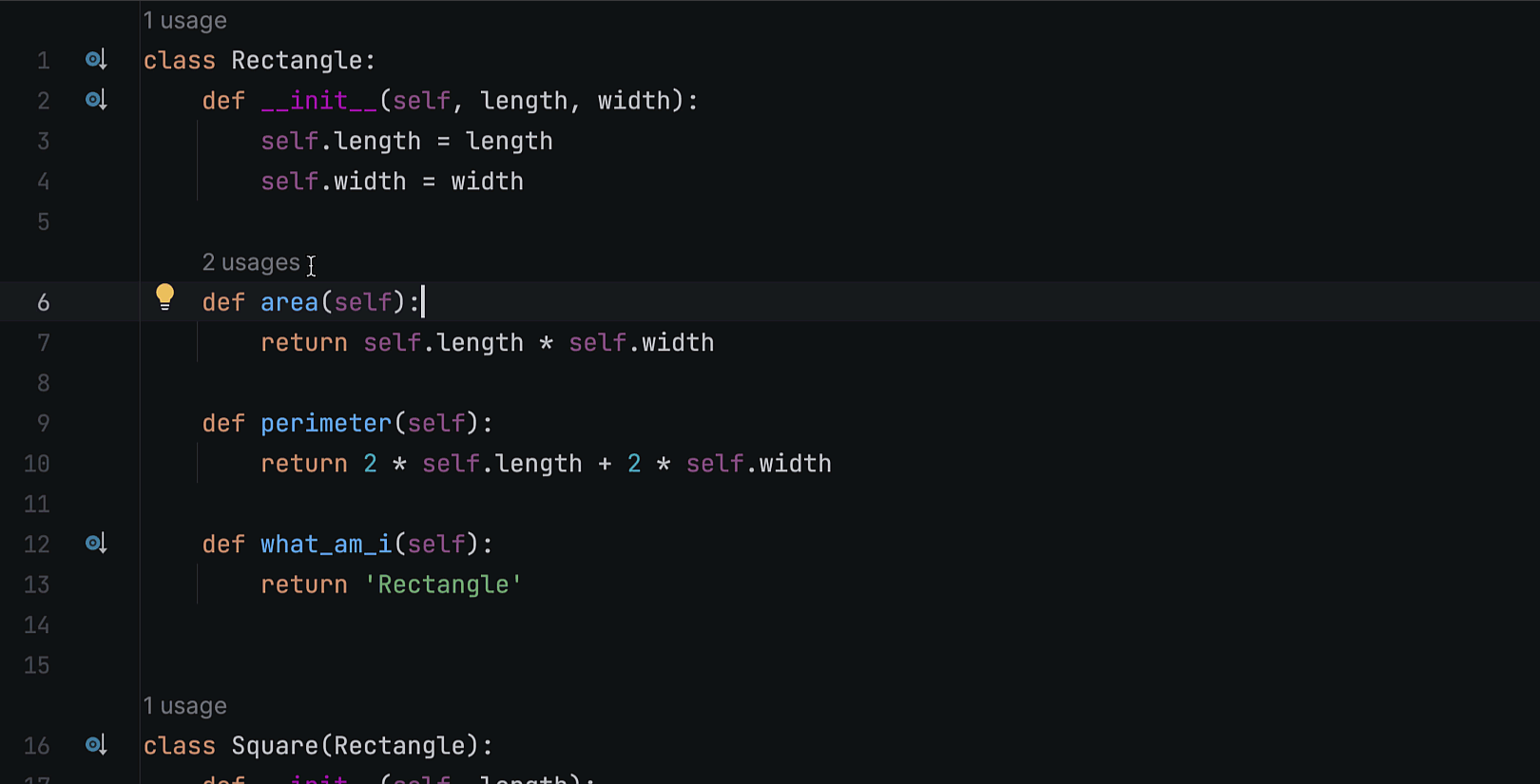 现在借助新的 usages(用法)内嵌提示,可以更轻松地跟踪类实现和重写方法。 提示会在符号的声明上方显示符号被使用的次数,并允许您导航到一个用法。