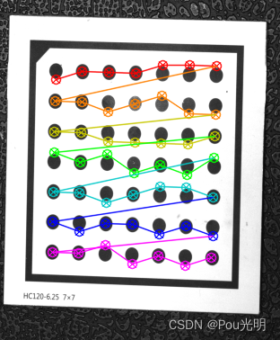 经过昨天晚上的调试,发现了一个主要问题:使用圆网格标定板标定时,不能使用cornerSubPix()函数,否则寻找角点时,会导致图一的情况(裁剪为30万像素)。就找到能参考的程序,推进还是很快的。