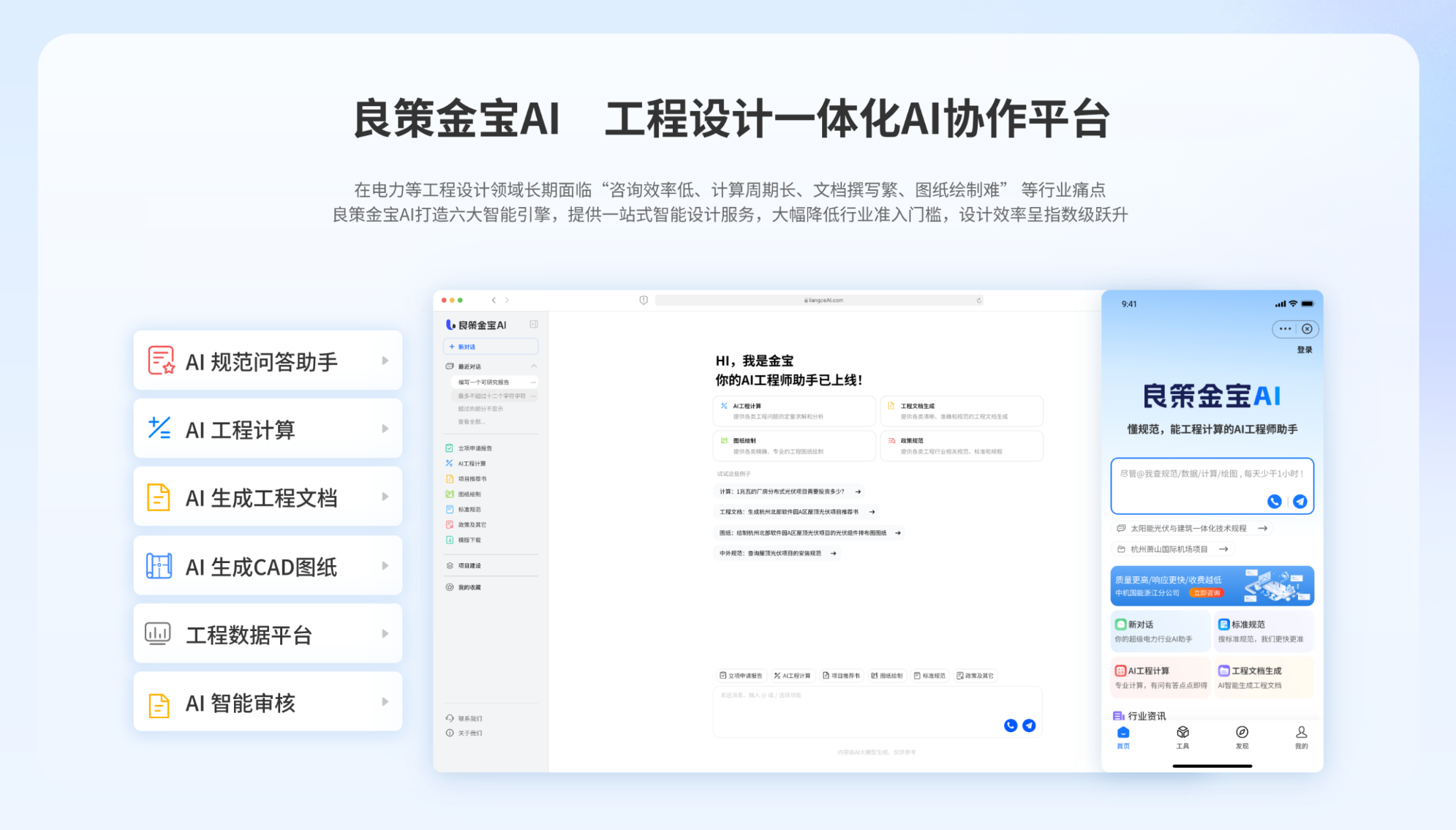 公有云轻量版:以网页应用形式提供标准化AI辅助能力,如图纸初稿生成、计算书模板填充、规范条文检索等,适合中小设计院或新团队低成本、低门槛快速验证AI价值;