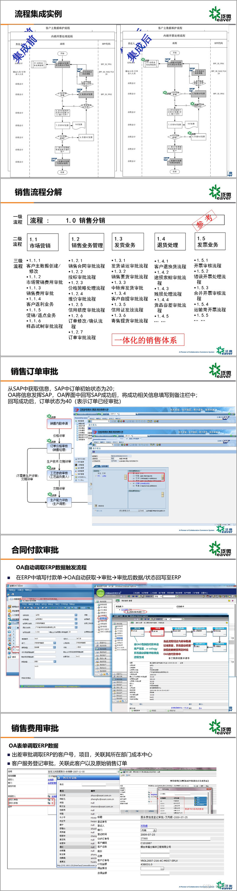 泛微协同解决方案通过构建全体员工的统一工作平台、企业知识和文化管理平台、业务流程管理的整合平台以及企业经营决策的整合平台,实现了ERP与OA系统的深度集成。
