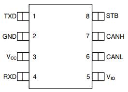 ASM1042系列收发器设计灵活,兼容 3.3V 和 5V MCU,并支持独立 VIO电源输入,可设置 RXD 输出电平与输入阈值,适配不同逻辑电平系统。在低功耗待机模式:STB 高电平时,CAN收发器关闭发送器与接收器,功耗低至 0.5–5μA,显著降低能源消耗。在待机模式下,检测到特定总线帧即可唤醒RXD输出,确保系统随时可用。这一设计为节能型汽车电子、远程工业设备和低功耗航天系统提供了理想解决方案。