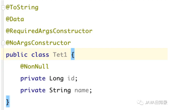 例如下⾯的⼀个实体类,引⼊Lombok后,可以⾃动⽣成GET/SET⽅法和⽆参构造函数。