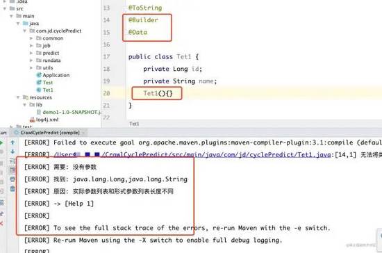 Lombok使⽤ 同时使⽤@Data和@Builder ,构建无参构造器报错!编译不通过。如下图: