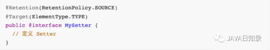 ⾸先创建⼀个 MySetter.java ⾃定义⼀个注解,代码如下: