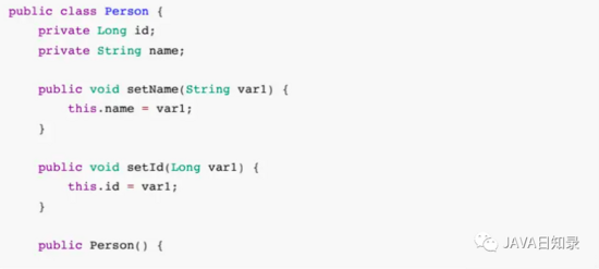 这时候再看⽣成的Person.class,可以发现Setter⽅法已经⽣成了: