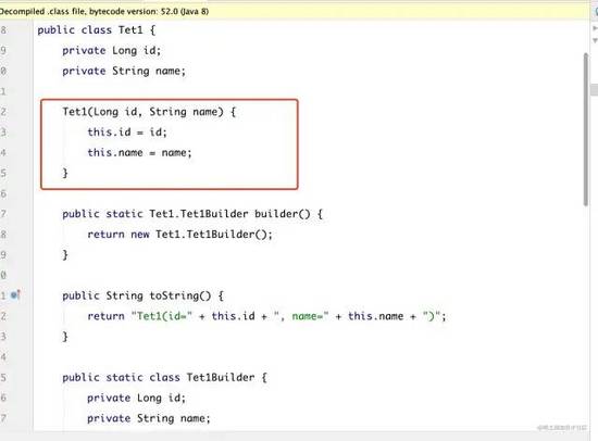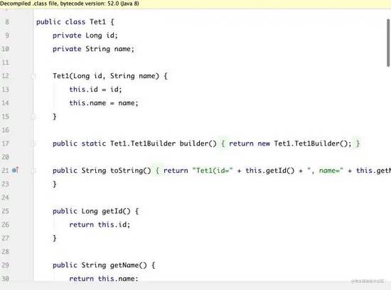 编译后的class为:可以看到 已经帮我们构建好了全属性的构造方法,但是如果值只引用@Builder注解是无法生成get和set的。
