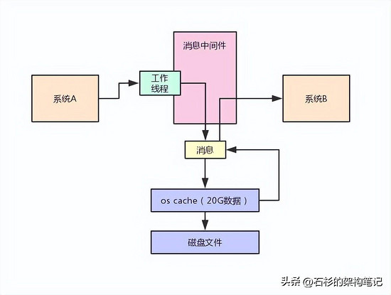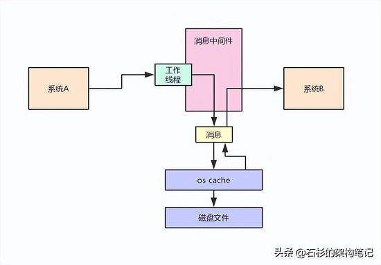 具体来说,比如说Kafka吧,如果你写一条数据到Kafka,他实际上会直接写入磁盘文件。