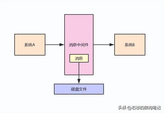 比如说系统A可以给系统B发送一条消息,那么中间需要依赖一个消息中间件,系统A要先把消息发送到消息中间件,然后系统B从这个消息中间件消费到这条消息。
