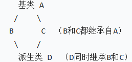 如图所示可知菱形继承就是一个派生类同时继承自两个基类,而这两个基类又共同继承自同一个基类。