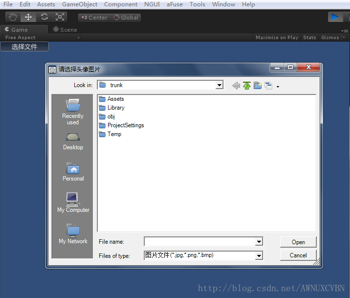 if (GUI.Button(new Rect(0, 0, 100, 20), "选择文件"))