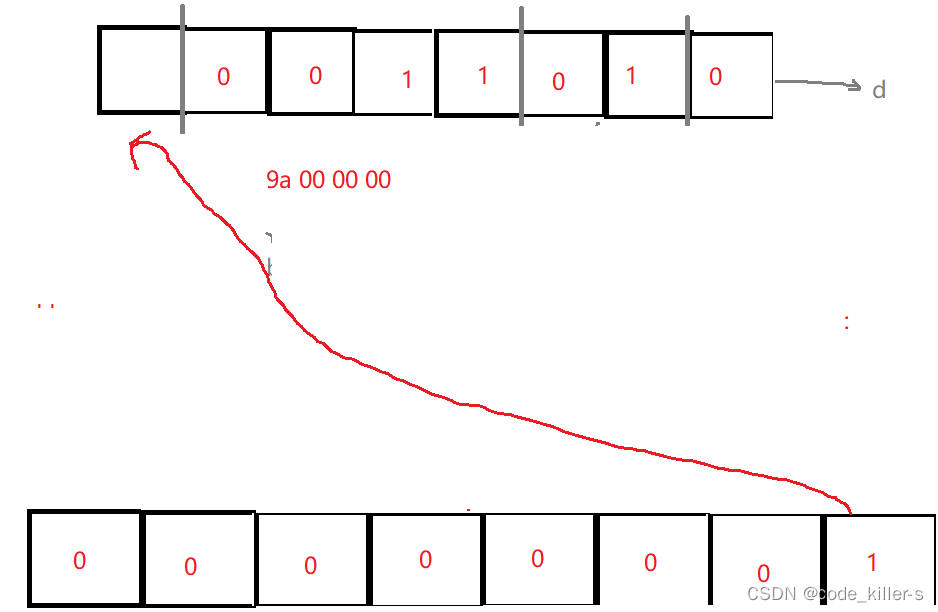 如上图所述,当把二进制转换为16进制时,分别为1a 01