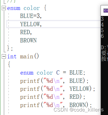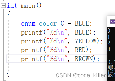 2.相较于#define定义的标识符,enum有着类型检查,更加严谨