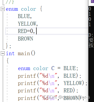 枚举是 C 语言中的一种基本数据类型,用于定义一组具有离散值的常量。,它可以让数据更 简洁,更易读。