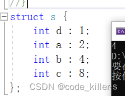 3.位段中能确定的最大数目是变化的(32机器上最大就是32,64机器上就是64,如果你在16 位机器上写了26,那么就会报错)