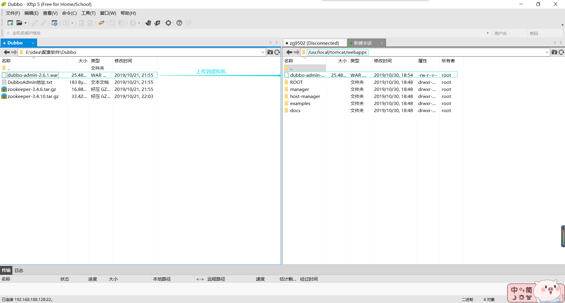 3. 将dubbo的war包上传到/usr/local/tomcat/webapps下:
