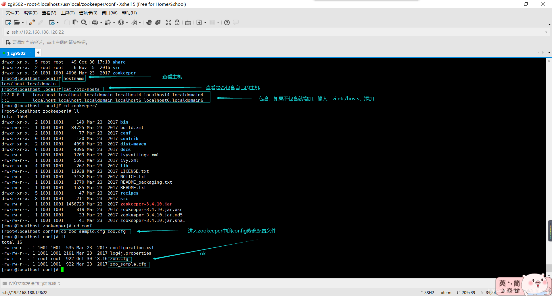 4. 看一下自己的主机名是否在hosts存在,如果没有增加: