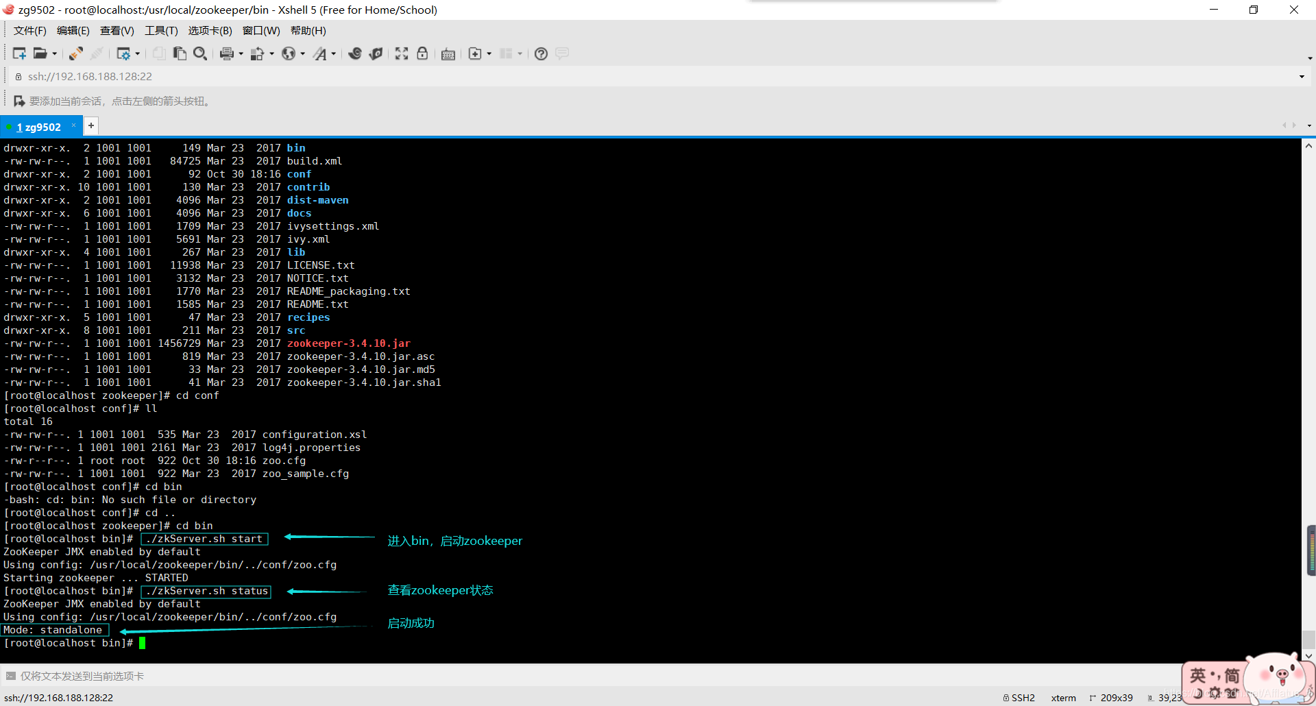 tar xvf zookeeper-3.4.10.tar.gz -C /usr/local