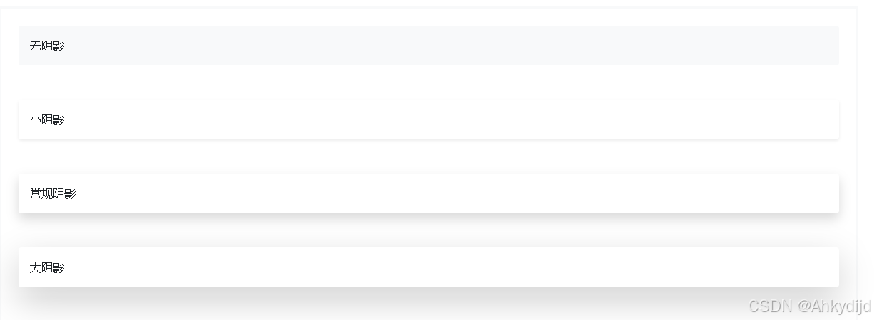 <div class="shadow-none p-3 mb-5 bg-light rounded">无阴影</div>