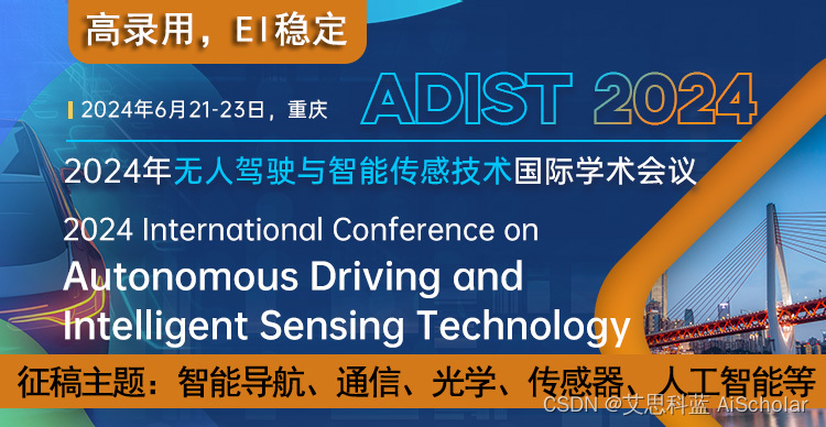 【高录用,EI 稳检索 | 智能导航、通信、光学、传感器、人工智能等多主题可选】2024年无人驾驶与智能传感技术国际学术会议(ADIST 2024)