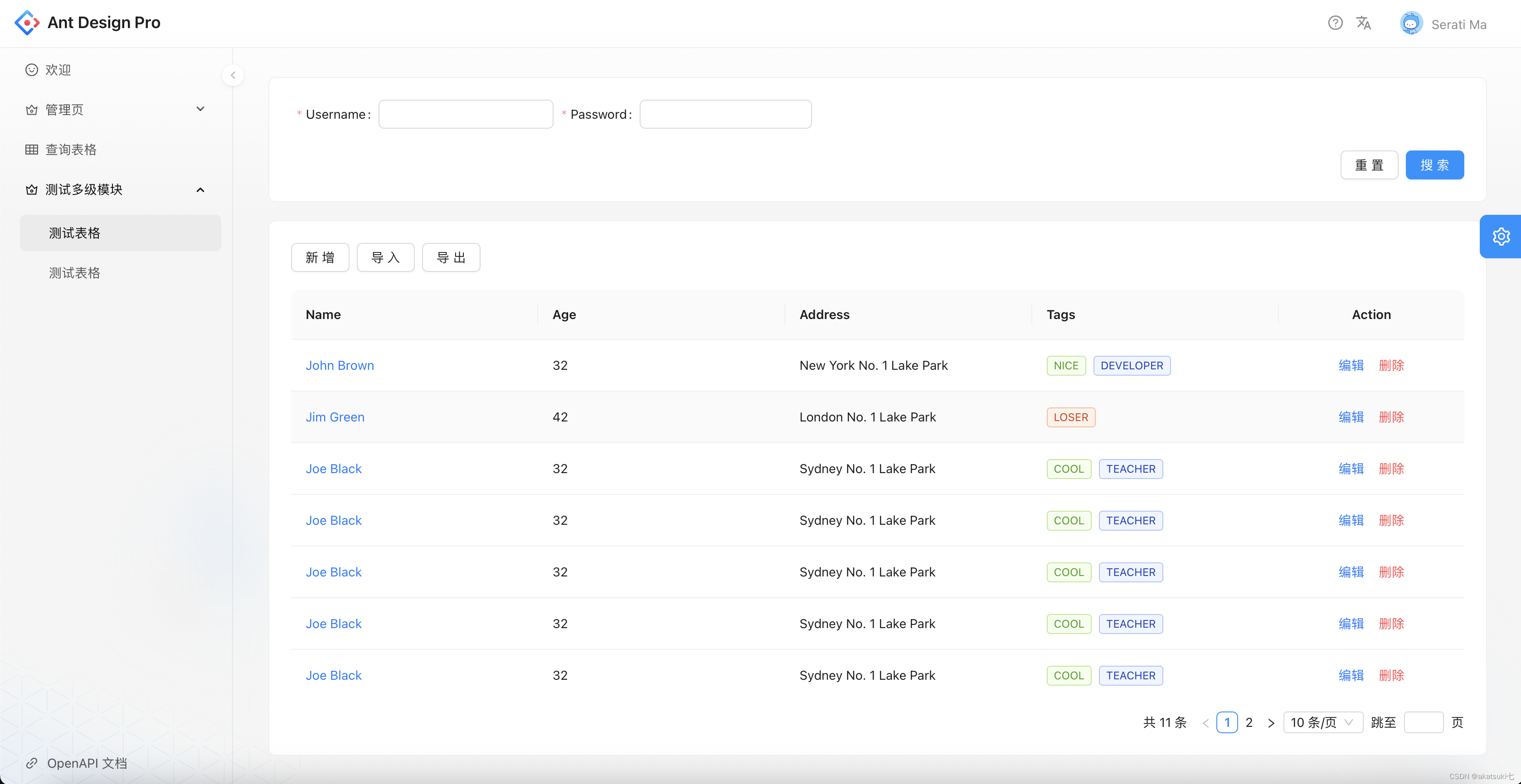 练习八、使用react的ant-design创建一个功能模块,支持数据管理页面