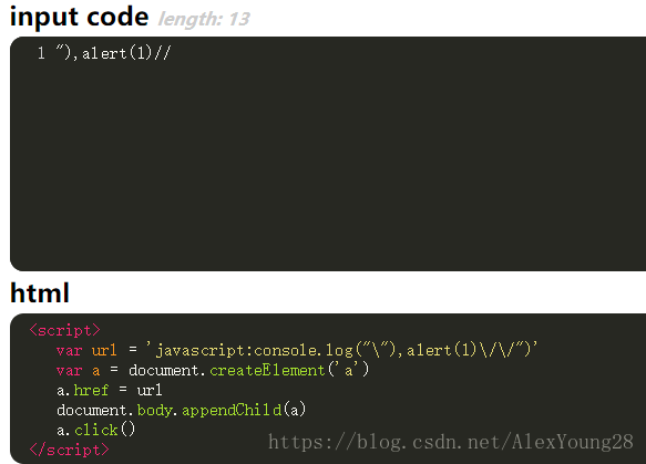 我们想到,我们是否可以使用 unicode 编码,来代替 圆括号。 这种思路没错,但是我们要遇到一个问题就是 unicode 编码怎么才会被转码实现了,如果只是正常的 html编码, unicode编码是不会有任何用的。