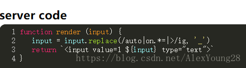 但是,我们这里还有一个问题,就是 onmousemove 这个注入,是以on开头且中间有=,所以我们最终的输入会被正则过滤如下: