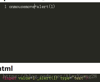这里,我们看到在input标签注入,我么就可以使用 onmousemove这个属性,这个属性是当鼠标移到input这个输入框时,就会被执行的属性。 我们可以注入: οnmοusemοve=alert(1)
