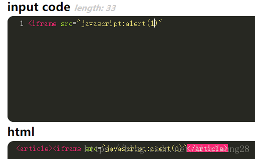 又或者可以H5中iframe的特点,因为h5中iframe的srcdoc属性,srcdoc里的代码会作为iframe中的内容显示出来,srcdoc中可以直接去写转译后的html片段。