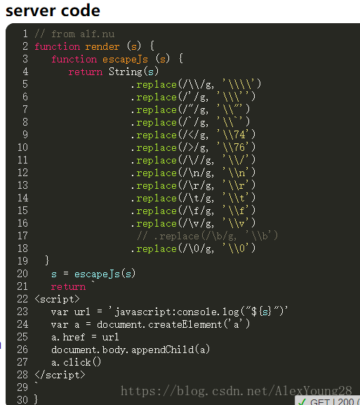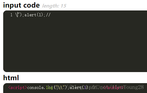 这里我们可以看到这个过滤,是将一些字符进行了转码,但是我们的 ’ 和 / 都是被转为了 unicode编码,所以这个实体编码仍然可以执行。所以,我们目前的任务就是先闭合 console.error(''),仍然执行JS。