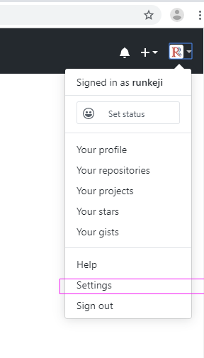 第一步:登录github账号,找到右上角的setting,进入个人账号信息设置界面,