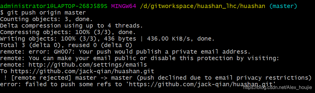 使用 命令 git push origin master 向远程仓库提交代码的时候,出现的问题 remote: error: GH007: Your push would publish a private email address.