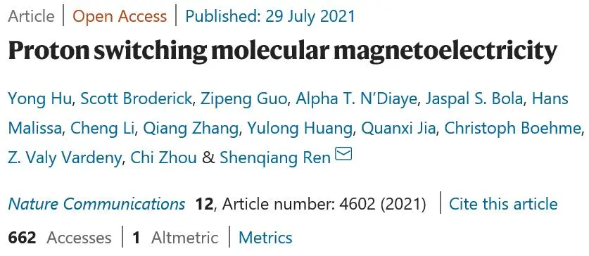 Hu, Y., Broderick, S., Guo, Z. et al. Proton switchingmolecular magnetoelectricity.Nat Commun12, 4602 (2021). https://doi.org/10.1038/s41467-021-24941-9.