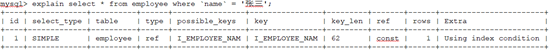 接下来,在employee表中根据name查找数据的时候,mysql优化器便选择了ref的连接类型。