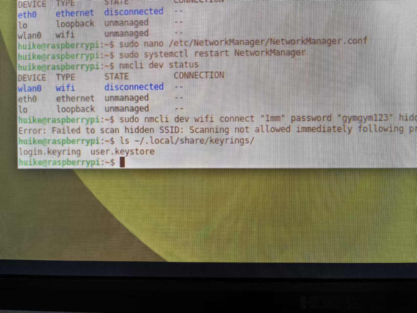 先查看ls ~/.local/share/keyrings/ 再rm ~/.local/share/keyrings/* 3.点击右上角重新连接wifi需要重新设置keyrings 4.成功连上 此方法暴力有效 感谢某不知名老师waw