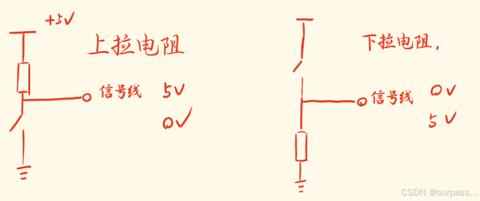 当外部有高电平信号输入时,引脚电平会被拉高,此时可以通过读取引脚的电平状态来获取外部信号。