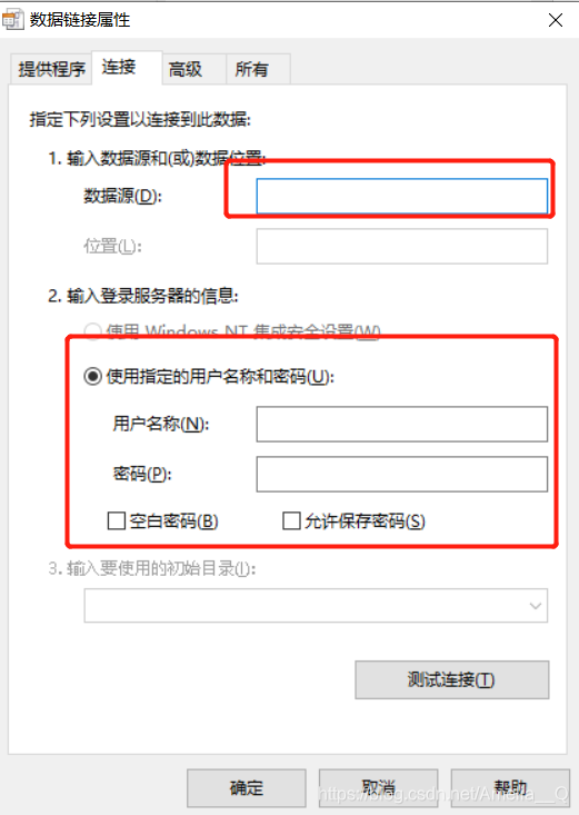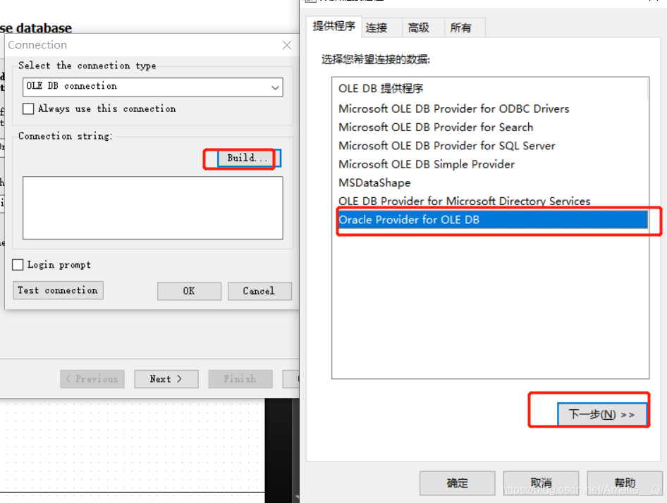 new datasource--->new connection-->选择OLE DB connection--->输入数据库ip/数据库名称 用户名和密码,连接数据库