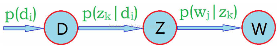 D代表文档,Z代表主题(隐含类别),W代表单词;