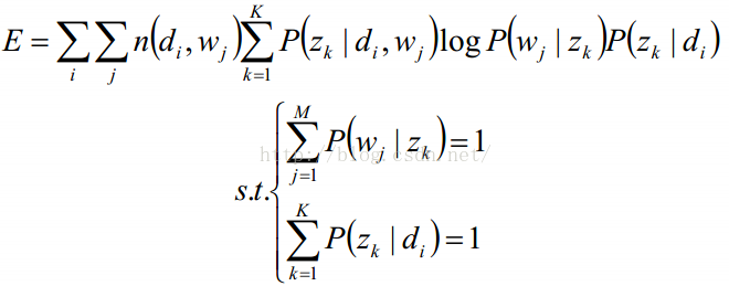 关于参数的函数E,并且,带有概率加和为1的约束条件:
