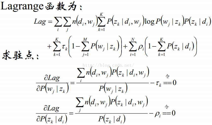 在(di,wj,zk)已知的前提下,求关于参数的似然函数期望极大值,得到最优解