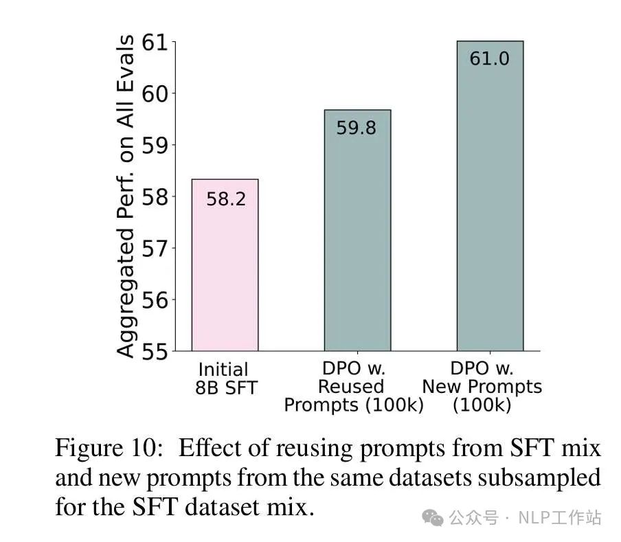 Unused Prompts Lead to Higher Performance vs. Reusing Prompts From SFT Mix. 即DPO阶段的prompt还是应该尽量SFT阶段没见过的。
