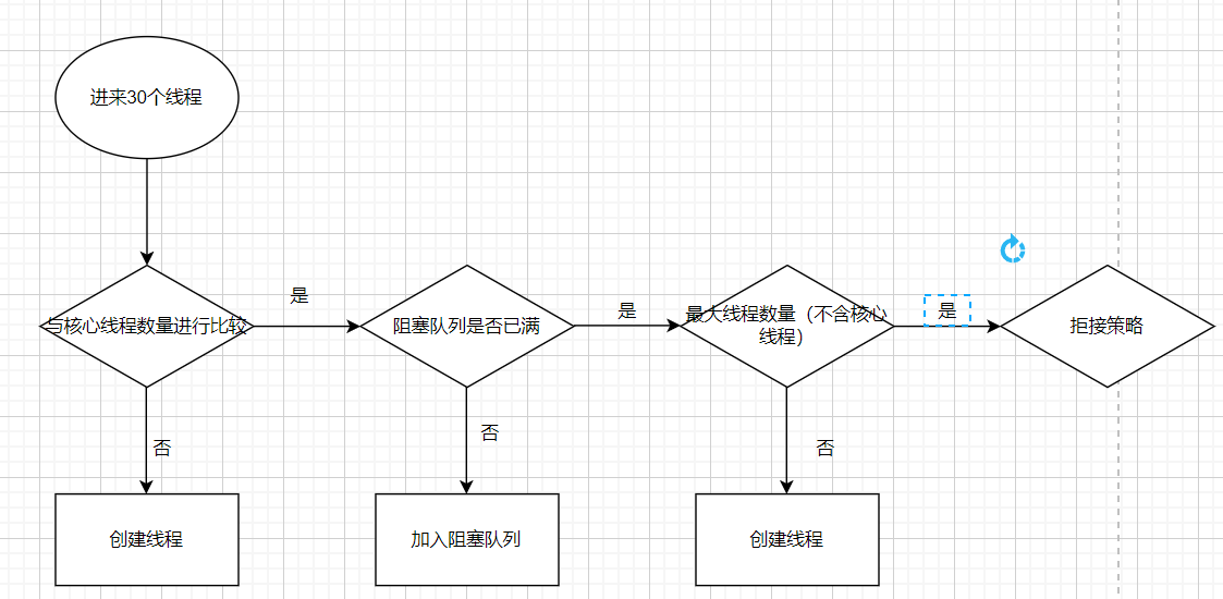 (4),拒绝策略:当进来的线程数量达到了最大线程数,并且阻塞队列中也无法容纳时,就必须使用拒绝策略,合理设置拒绝策略预防oom危险。