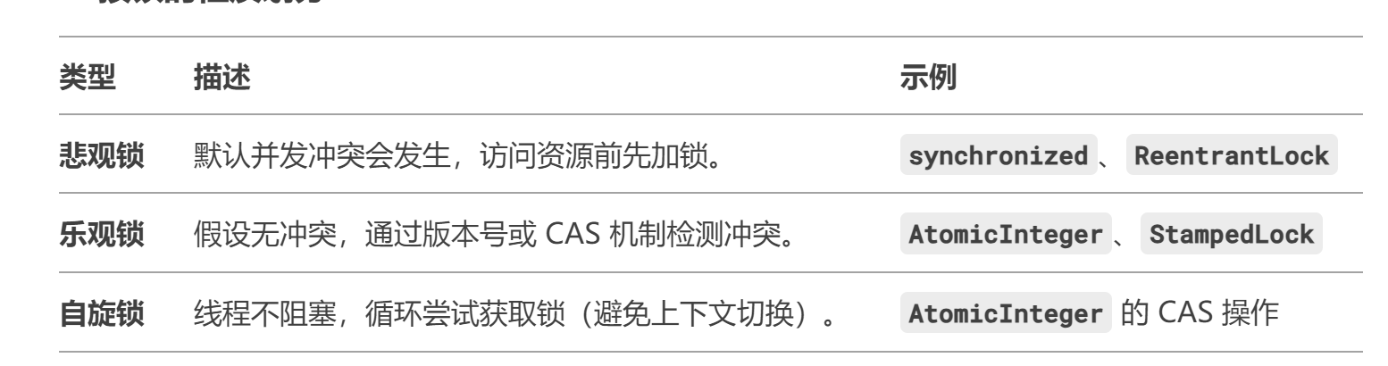乐观锁:可以通过版本号或CAS来检测冲突(适合读写少的场景下,因为乐观锁它可能不上锁,它在读取自己副本内容时,会先加载主内存的数据,检查是否被修改后才会读出来。)(这里说一下CAS,全称:Compare-And-Swap:比较并交换,Java高并发中核心无锁算法)