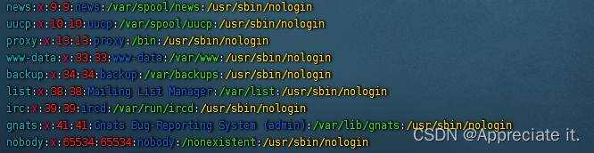 用户名:密码:UID:GID:描述性信息:主目录:默认shell