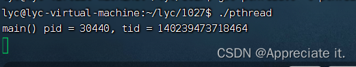 printf("main() pid=%d ,tid=%lu\n",getpid(),tid);