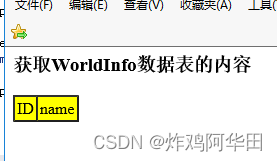 Response.Write("<h3>获取WorldInfo数据表的内容</h3>");//response反馈