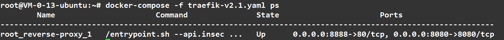 docker-compose -f traefik-v2.1.yaml up -d reverse-proxy